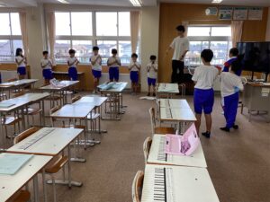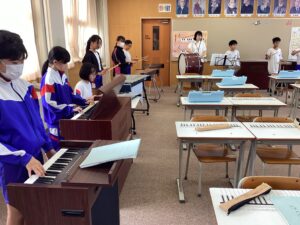2025年10月2日 / 最終更新日時 : 2025年10月2日 nen5 5年生 総合「学習の成果発表会に向けて④」5年 学習の成果発表会に向けて音楽の練習をしています。 合奏「虹」を楽器ごとに分かれて演奏をしています。 きれいに音が重なるように気を付けています。