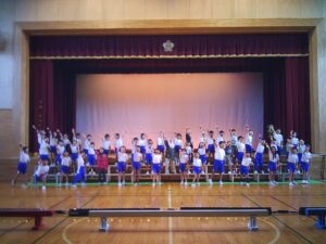 練習の最後に、全員で「明日がんばるぞ!!」とかけ声をあげました。