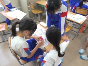 オリエンテーリングを行う上での諸注意やきまりの確認をしたり、地図にルートを書き込んだりしました。