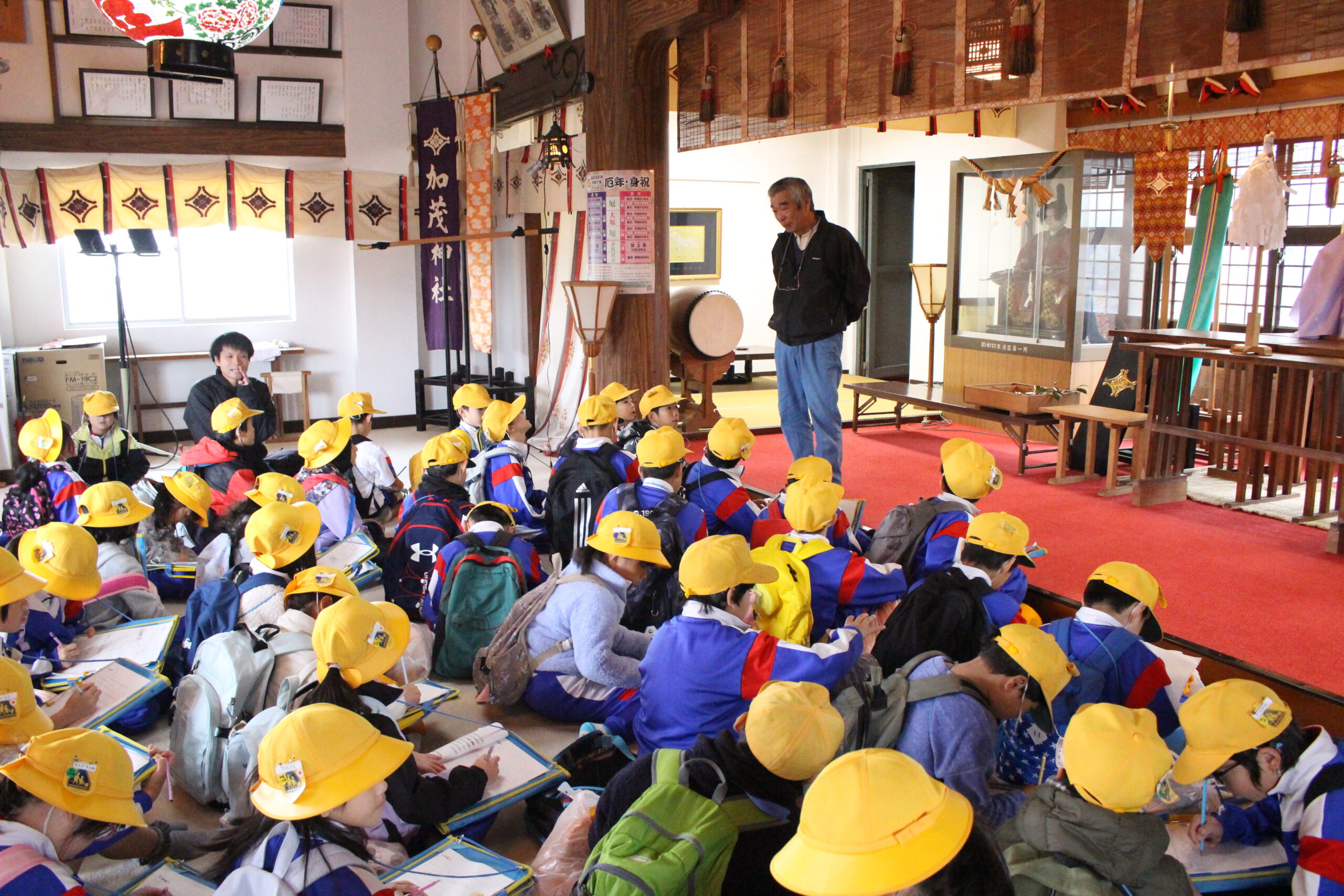 2025年11月19日 / 最終更新日時 : 2025年11月19日 nen2 2年生 2年 生活科~町探検に行ってきました!パート2~ 11月18日(火)に海老江地区の町探検に行きました。ぱんどあーる、海老江加茂神社、海老江コミュニティセンター、まつり資料館、海老江児童センターの方々に見学を受け入れていただき、子供たちが考えた質問に答えていただきました。「夜の2時からパンをつくっていることにびっくりした!」「曳山の車輪に鉄が使われているのは知らなかった!」など、見学や質問を通してたくさんのことに気付くことができました。先週の七美地区に引き続き、学びの多い1日になったようです。また、悪天候の中、一生懸命歩いた子供たちの姿に成長を感じました。