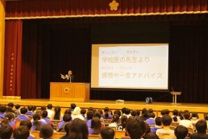 学校歯科医の先生から、歯の健康や口腔の衛生についてお話しして頂き、歯の大切さを改めて認識する機会となりました。