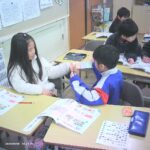 2026年2月3日 / 最終更新日時 : 2026年2月3日 nen1 1年生 算数科「どちらがひろい」(1年生) 算数科「どちらがひろい」の学習で、陣取り遊びをしました。 じゃんけんで勝ったら1マスずつ塗っていき、たくさん塗れた方が勝ちになります。 子供たちは、「ぼくの方がたくさん塗れたよ」「12対13で勝ったよ」と言いながら、楽しんで広さを比べていました。