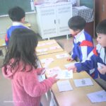 2026年2月5日 / 最終更新日時 : 2026年2月5日 nen1 1年生 国語科「ものの名まえ」(1年生) 国語科「ものの名まえ」の学習でお店屋さんごっこをしました。 各グループで魚屋、ゲーム屋、お菓子屋、花屋、おもちゃ屋、くだもの屋をすることに決まりました。 お客さん役の人は、「りんごを一つください」「あさがおはありますか」など、一つ一つの名前をしっかり言ってから買い物をしていました。 体験を通して、ものにはそれぞれ名前があること、また、それらをまとめてあらわす言い方があることを学びました。
