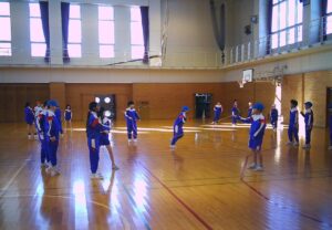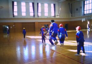 学習の後半では、長縄なわとびをしました。全員とびや8の字とびをし、「おしい」「もうちょっと!」「上手!」など、互いに声をかけ合いながら活動に取り組んでいます。