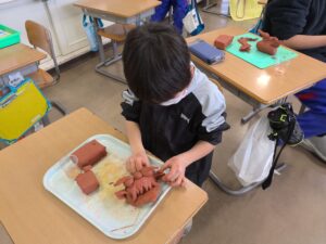 子供たちは、「粘土の触り心地が気持ちいい」「体の部分を立体的につくるのが難しい」と話していました。