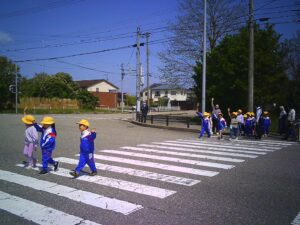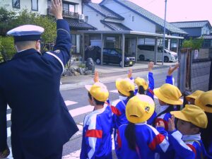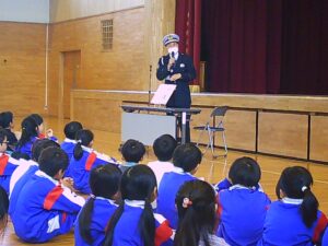 2026年4月22日 / 最終更新日時 : 2026年4月22日 nen1 1年生 交通安全教室(1年生) 21日(火)に、交通安全教室を行いました。 体育館で警察署の方から交通安全についてのお話を聞きました。 横断歩道や信号のある交差点を渡るときは、次の3つに気を付けることを教えてもらいました。 ①手を挙げる ②右、左、右を見る ③車の音を聞く その後、実際に道路を歩きました。 子供たちは、「右、左、右」とかけ声をかけて道路を歩くことができました。